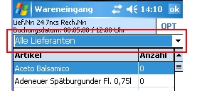 Wenn Ihre Hardware den Aufruf einer Bildschirmtastatur unterstützt, haben Sie damit eine Volltextsuche in der Artikelliste.