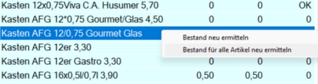 Im Kontextmenü könne Sie die Bestände einzelner oder aller Artikel aktualisieren.