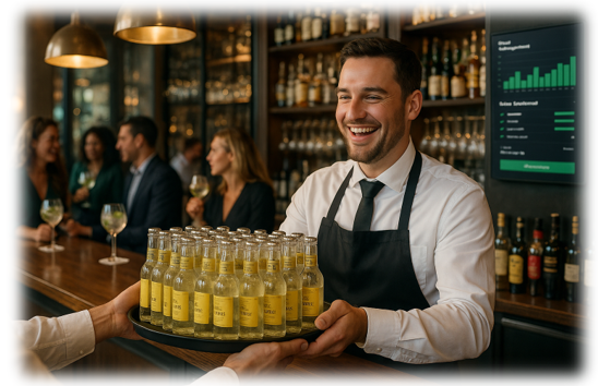 Der Gin Tonic läuft – ein voller Außenbereich, zufriedene Gäste, hoher Durchsatz. Die Bedienung kommt ins Schwitzen, denn das gekühlte Tonic-Wasser wird knapp. In früheren Zeiten hätte das bedeutet: Flasche suchen, Kühlung unterbrechen, Zeit verlieren. Doch heute ist alles anders: