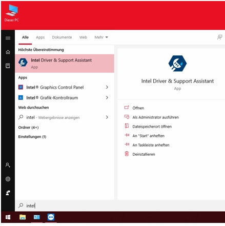 Wählen Sie dort „Intel Graphics Control Panel“ aus (ggf. das obere Bild ohne Markierung für die Doku verwenden).