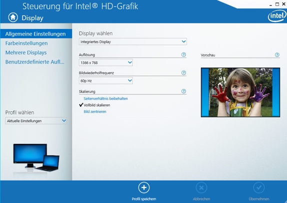 Je nach Hardware kann eine Anpassung der Skalierung notwendig sein.