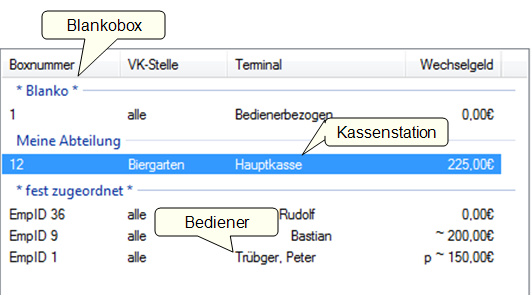 privates Wechselgeld | Hiermit kennzeichnen Sie die Verwendung privaten Wechselgeldes, das heißt der Bediener bringt dieses selbst mit und es verbleibt auch nach Dienstschluss in seinem Besitz. Im Standard sollte der Betrag feststehen oder zum Arbeitsbeginn eingezählt werden. Lesen Sie auch Wechselgeldverwendung zu diesem Thema. |