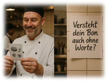 Ein Orderbon mit einem kleinen Grill-Symbol neben „medium“ oder einem bei „extra scharf“ wird in der Küche schneller erkannt als jeder Text – insbesondere bei hohem Tempo oder Sprachbarrieren.