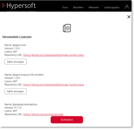 In der mobilen Navigation und im Webshop ist eine Lizenz-Verlinkung integriert, um Nutzern einen direkten und schnellen Zugriff auf Lizenzinformationen zu ermöglichen.