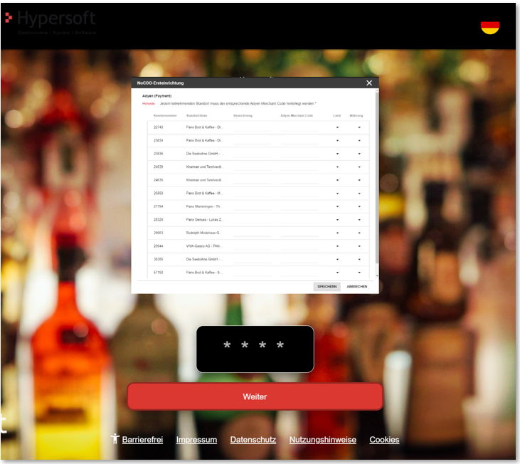 Beachten Sie bitte, dass auch zu ihrer Sicherheit nur einmalig eine Rechnungsadresse eingegeben werden kann und diese Eingabe mit Ihren Buchungsdaten verbunden wird. Wenn Sie direkt am POS die Anschriftabfrage ausgefüllt haben ist die Adresse natürlich auch in NoCOO schon vorhanden.