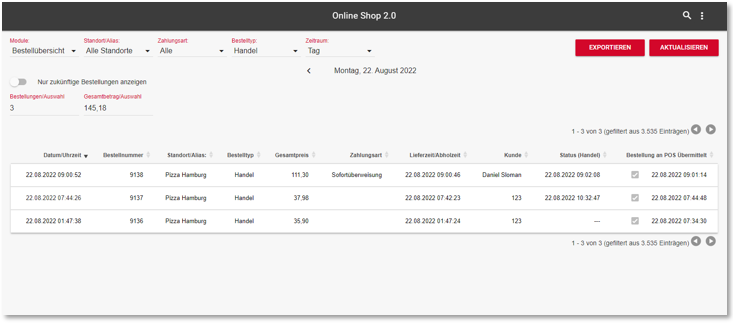 Individuelle Workflow Einstellungen empfehlen sich, wenn Retail-Bestellungen getrennt von anderen Bestellungen (Lieferung, Abholung) bearbeitet werden. In der Bestellübersicht in Portal können Sie hierfür den Bestelltyp Handel filtern.