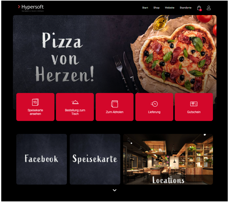 Zuerst einige Impressionen. Startseite Ansicht Slider, Bestelltypen und Kacheln...