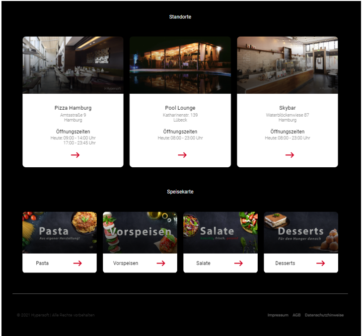 Die angezeigten Elemente beziehen sich jeweils auf die gleichen Einstellungen im Hypersoft-Portal, wobei die Desktop-Ansicht deutlich mehr Informationen bereits auf der Startseite anzeigt.