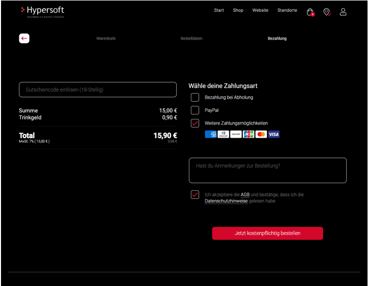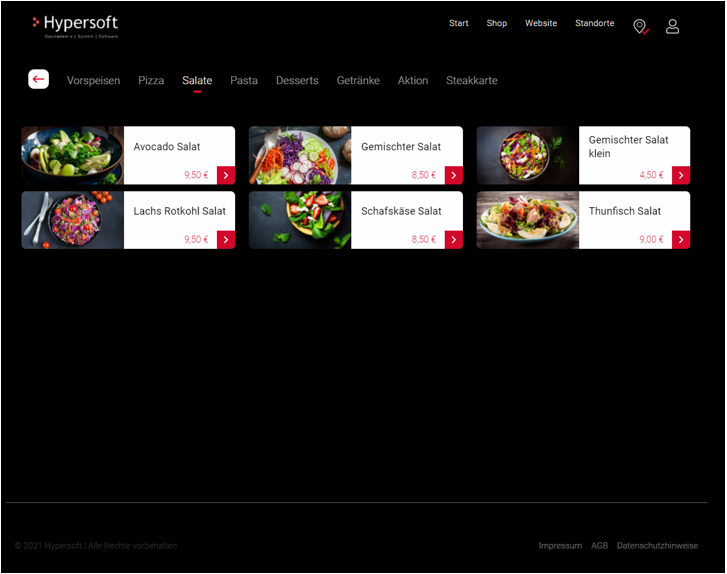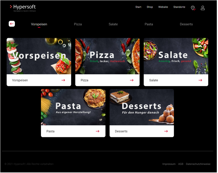 Warengruppen sind in der mobilen Ansicht ausschließlich nach der Auswahl des Moduls Shop sichtbar. Die Desktop Ansicht zeigt diese auf der Startseite an und blättert diese bei mir als 5 Warengruppen automatisch durch. Nach der Auswahl einer Warengruppe muss dennoch der gewünschte Bestelltyp ausgewählt werden, um die für diesen Bestelltyp passenden Preisen anzuzeigen.