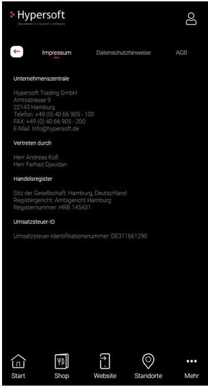 Dazu im Vergleich die Rechtlichen Texte in der mobilen Ansicht: