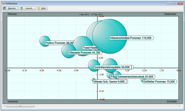 - Die Profilanalyse ist ein vollkommen neues und leistungsstarkes graphisches Auswertungsprogramm. Zusammen mit den Buchungen aus dem Kassensystem und den Stammdaten erhalten Sie Analysen, für die sonst externe Berater herangezogen werden müssten. Die Profilanalyse durchführen