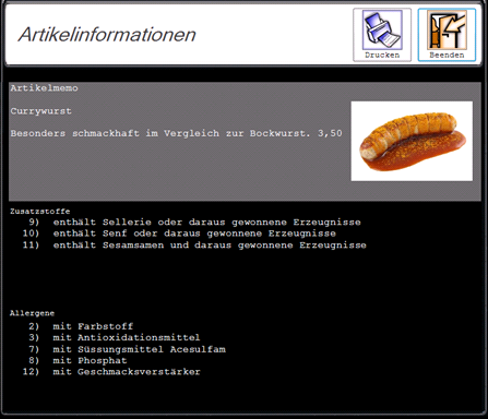 Die Artikelmemo Funktion wurde erweitert und zweit Inhaltsstoffe sowie Allergene an: