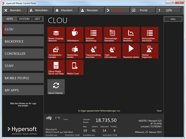 Da der CLOU MOBILE seit einiger Zeit Fehlermeldungen senden kann konnten wir das Programm analysieren und viele besondere Fehlerfälle korrigieren. Auch haben wir für dieses Hotfix noch einige Verbesserungen integriert, um Ihnen die Arbeit zum Weihnachtgeschäft etwas zu erleichtern. Hierfür musste das Hauptmenü des CLOU MOBILE leicht angepasst, werden, da es missverständlich war.