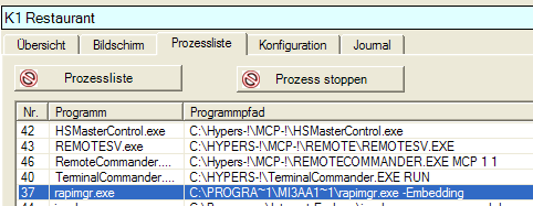 Wenn Sie einen Prozess auswählen können Sie diesen mit dem Knopf Prozess stoppen auf der Station ( in der Ferne) beenden.
