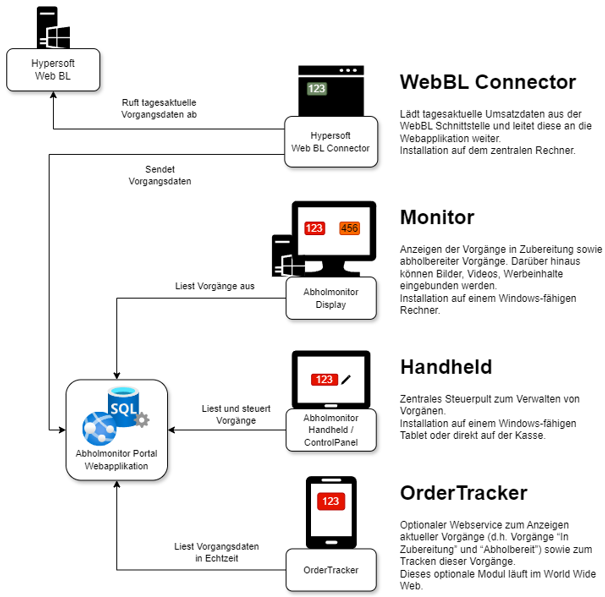 Der Abholmonitor besteht aus mehreren Softwaremodulen: