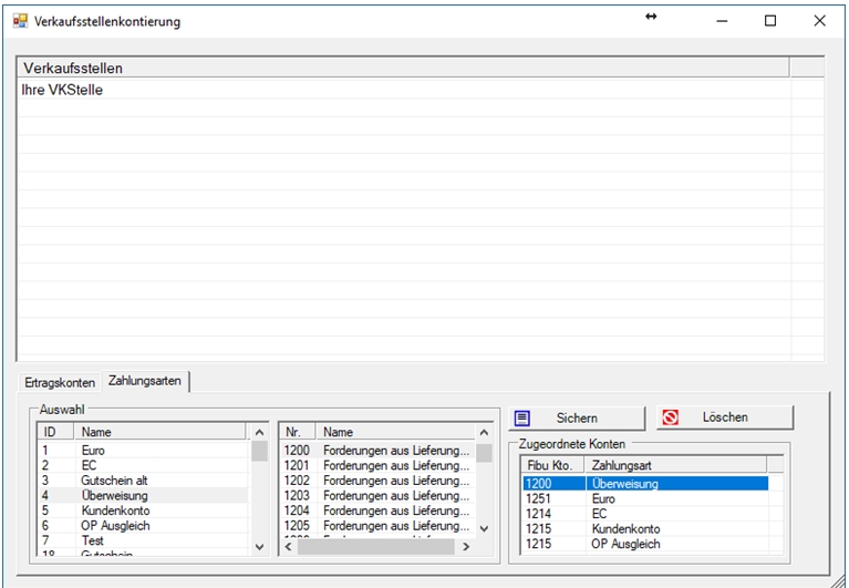 Zusätzlich können hier auch die Kontierungen pro Verkaufsstelle im Bereich der Zahlungsarten vorgenommen werden.