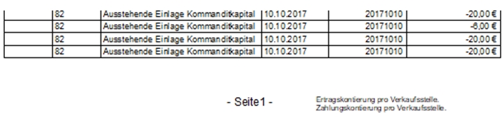 Der Reportmanager ermittelt die Kontierung, verwendet vorrangig die der Verkaufsstellen und zeigt dies als Hinweis auf den betroffenen berichten auf jeder Druckseite unten rechts an.