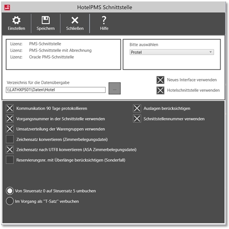 Das Verzeichnis für den Datenaustausch wird in der Hypersoft PMS Schnittstelle, diesem Transferprogramm und im Hotelprogramm des Herstellers eingerichtet.