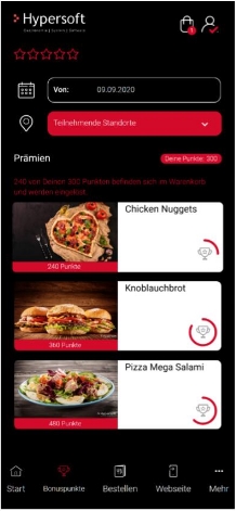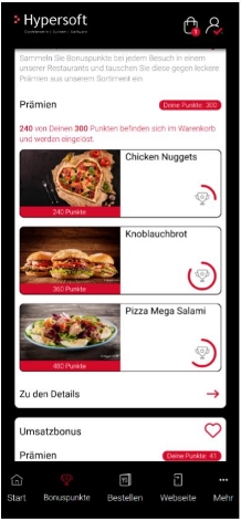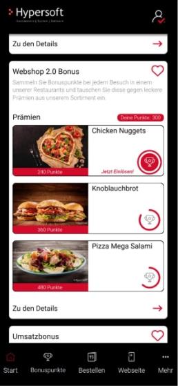 Wird unter der Bonusaktion angezeigt, wie viele Punkte aktuell im Warenkorb gebunden sind