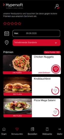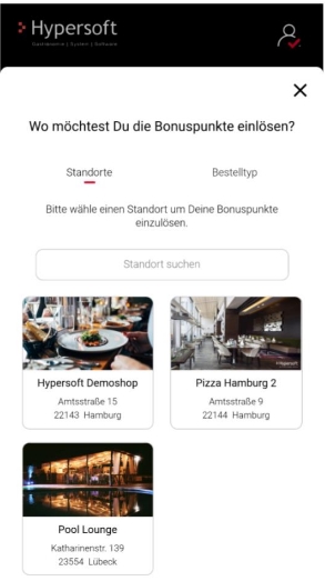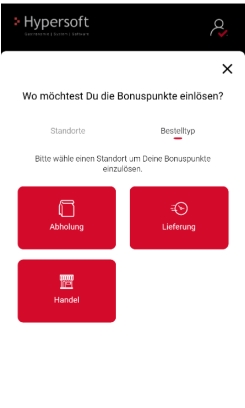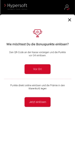 Der Benutzer kann wählen, ob die Punkte online oder vor Ort eingelöst werden sollen.