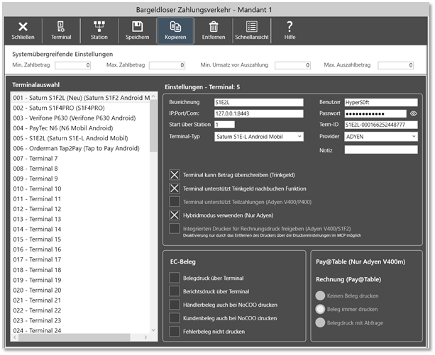 Die erste technische Umsetzung des Hybridbetriebs erfolgt im Bereich bargeldloser Zahlung (Adyen-Terminals).